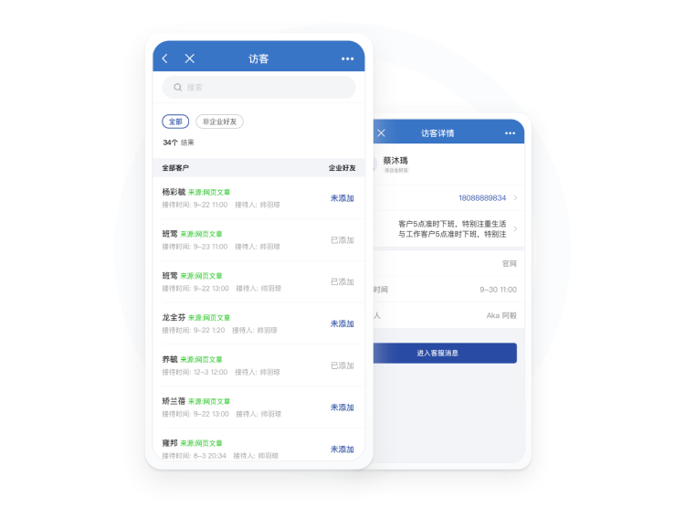便捷查看咨询客户的详情、添加好友的情况,掌握每个潜客画像